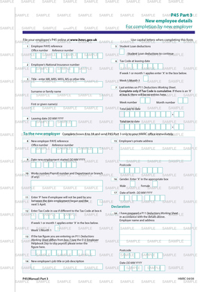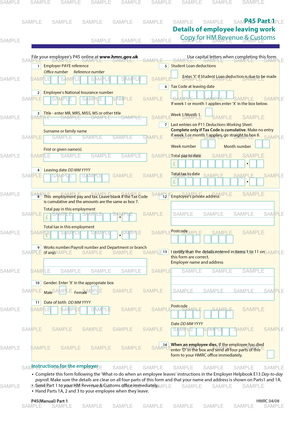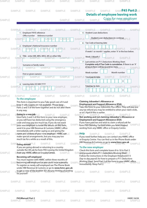 - A hard copy will be delivered to you within 3 working days created on our P45 template.